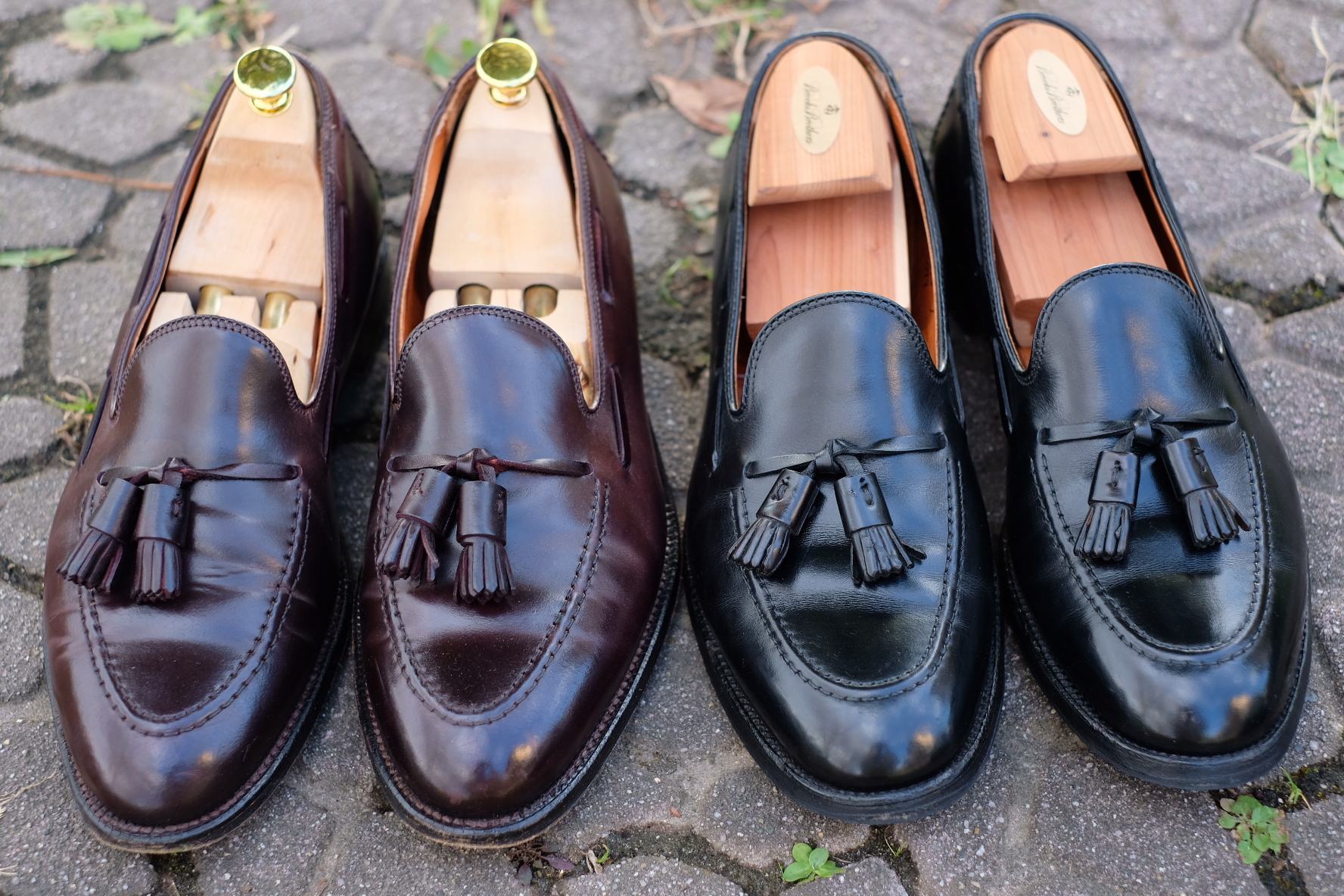 2足ともブルックスロゴのオールデンのタッセルローファーのためアバディーンラストのはずだが、甲のモカ縫いの雰囲気も違った。セミスクエア的な黒カーフに比べてややラウンド気味のコードバンの方だった。